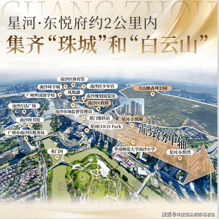 卖点二:区府核心地段,现成配套无需等待 项目坐落于南沙区府核心板块,5年无宅地供应,稀缺性拉满,2公里内学铁商医全配套覆盖,无需等待规划落地,入住即享便捷生活。