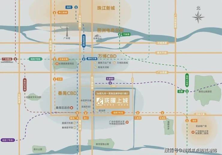 地铁22号线:1站至番禺广场(区政务中心),30分钟覆盖南沙自贸区、荔湾白鹅潭等重点区域。