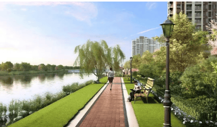 项目沿河打造了约1.6公里滨水漫步公园(在建中)和体育运动公园,营造出运动、娱乐、休闲等松弛感生活聚场。社区内部还规划有邻里共享意趣会所、健康魔方运动会所等公共空间,增强了社区的互动性和活力。