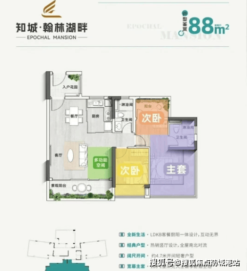 88平方米三房两厅两卫:大一些的三房户型,功能分区明确,舒适度更高。