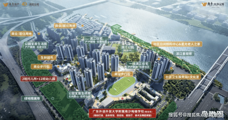 教育方面,项目自带12班幼儿园、2班托儿所和54班九年一贯制中小学,满足业主子女的教育需求。此外,周边3公里范围内有广大附中、广州外国语学校和湾区实验学校等优质教育资源。商业配套方面,项目自带约1.4万平方米的公园式开放商业街,提供一站式购物、餐饮和娱乐服务。医疗方面,周边有南沙区第一人民医院和中山大学附属第一(南沙)医院等医疗机构,保障居民健康需求。