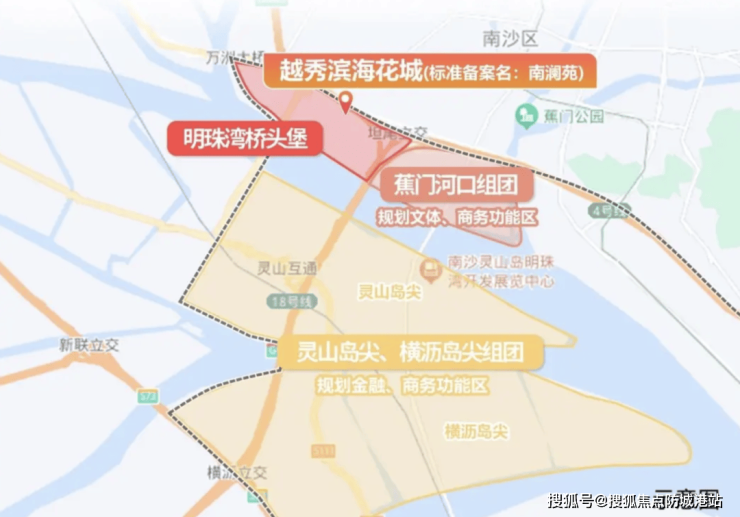 项目位于明珠湾板块,紧邻南沙行政中心、商务中心和交通要道,地理位置优越。周边规划有地铁15号线、18号线、22号线和31号线,未来交通出行将更加便捷。目前,项目距离地铁18号线南沙客运港站约3公里,驾车约10分钟可达,方便前往广州中心城区。