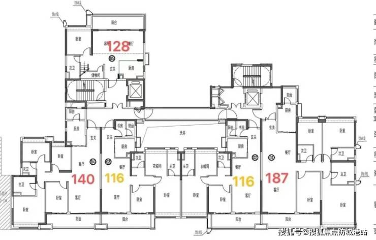 有约116、128、140、187平4房,面积越大,价格越贵,单价在7-8万/平之间。