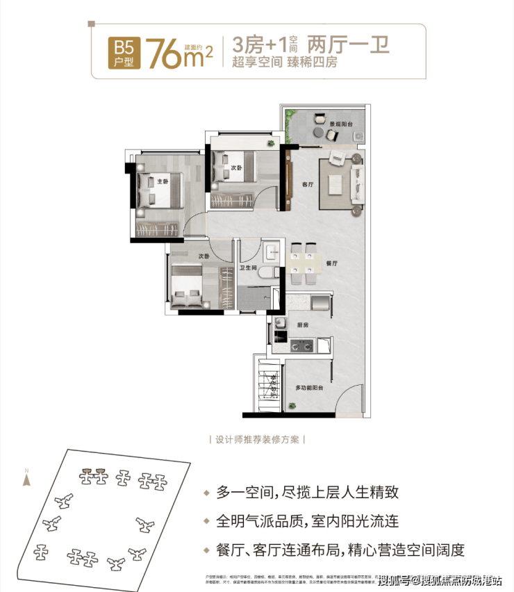 具体户型分布如下:76㎡3房+1空间2厅1卫,臻稀小户型,拥享自然山景,客餐厅连通布局,是天河刚需上车首选;88㎡3房+1空间2厅2卫,分为竖厅、横厅两种户型,竖厅动静分区、三开间采光,横厅单边位布局、南北通透,均为热销爆款;119㎡4房+1空间2厅2卫,涵盖横厅、竖厅两种设计,横厅约15米南向五开间,竖厅经典布局、双阳台设计,适配改善换房需求;140㎡5房2厅2卫,两梯四户设计,南北对流,约32㎡阔绰客餐厅,适配家族聚居;194㎡5房2厅4卫,奢阔大平层仅27席,专梯入户,约21米南向开间,双景观阳台,彰显顶奢人居格调。所有户型均升级精奢智能装标,配备中央空调、智能门锁等,提升居住便捷度与舒适度。