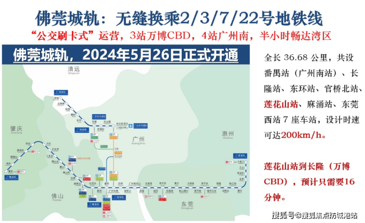 佛莞城轨:连接佛山、东莞及广州,仅需3站即可到达万博商圈,4站抵达广州南站。