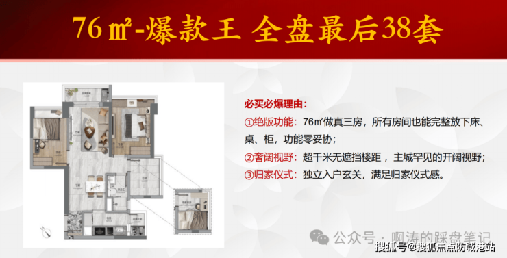 ◇ 项目户型:建面约76-108㎡「超新规」阔景刚需产品(断货王系列)、建面约126-139㎡270°环幕江景大平层,覆盖刚需、改善全年龄段需求,户型设计贴合现代家庭居住习惯,利用率拉满)