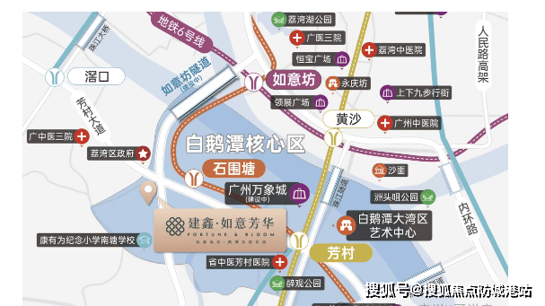 生活配套: 除了老荔湾的传统商圈外,白鹅潭万象城和聚龙湾太古里等高端商业体的建设将大幅提升区域的商业能级,为建鑫·如意芳华的业主带来更丰富的消费选择。此外,项目距离广州中医药大学第三附属医院(芳村分院)仅约800米,医疗资源丰富,保障了居民的健康需求。