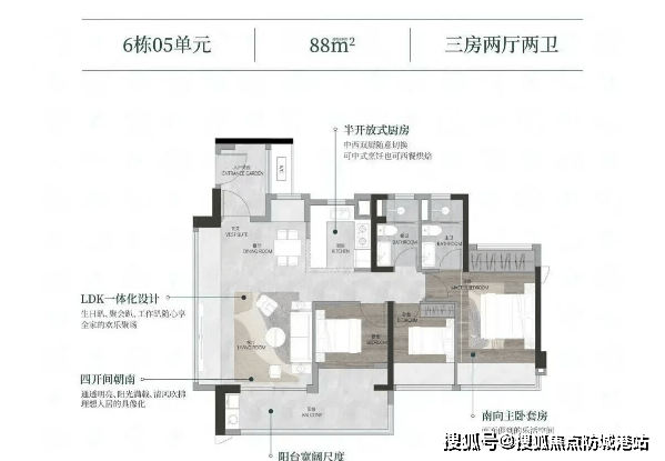 在售户型: 项目主打建面约82-141平方米的三至四房户型,所有户型均采用新规设计,使用率较高。首期推出的产品包括建面约88平方米、89平方米的三房以及106平方米、108平方米的四房,这些面积段的户型在市场上非常受欢迎。特别值得一提的是,阳台尺寸较大,例如88平方米户型的阳台开间约6.2米,105平方米户型约6.5米,125平方米户型更是达到了8.3米,极大增强了居住的空间感和舒适度。此外,所有户型均有入户花园和超大飘窗,进一步提升了居住体验。