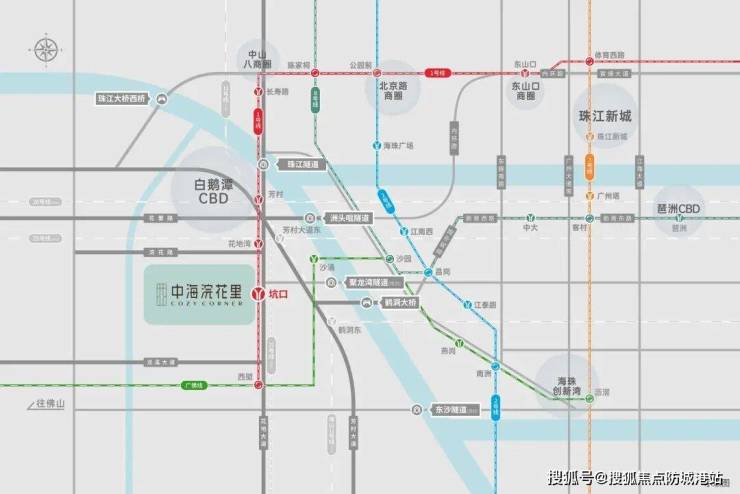 中海·浣花里所在的珠江西岸中央活力区(CAZ)是广州新封面区域,交通体系完善。项目距离地铁1号线坑口站约300米直达,方便通勤至越秀、天河核心区;地铁5号线贯穿东西方向,覆盖旧城中心、珠江新城CBD及黄埔区域;广佛线沙涌站直达佛山核心区,实现跨城出行无缝衔接。