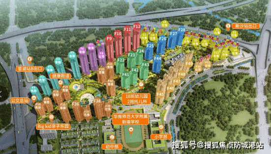在配套设施方面,越秀星图 TOD 可谓一应俱全。教育配套尤为亮眼,小区自带九年一贯制华南师范大学附属新塘学校,由华南师范大学选派原华师附小本部副校长吴启航校长亲任该校校长,目前共 63 个班,招生范围仅针对本小区(其中小学 42 个班,初中 21 个班),且小学已于 2021 年 9 月开学,初中也在 2022 年 9 月开学。此外,小区还有 2 所托儿所、2 所幼儿园(新塘镇东区幼儿园已开学),能满足业主 12 年全龄教育需求。生活配套上,项目规划约超 2.5 万㎡的缤纷商业街,目前麦当劳、健身房、钱大妈等知名商家均已开业;还拥有新塘首个广州图书馆直属分馆,馆藏图书约 3 万册,已正式开放,可与全市 172 家图书馆通借通还,业主下楼就能享受优质文化服务。同时,小区内打造了约 26 万㎡立体空中园林,相当于 36 个国际标准足球场,园内设有 5 大儿童主题乐园(其中 1 个最大面积为 2000㎡)、亲子菜园、亲水乐园、游泳池、篮球场、4 条健康跑道(总长约 2.6km),为业主提供了休闲娱乐、锻炼身体的好去处。
