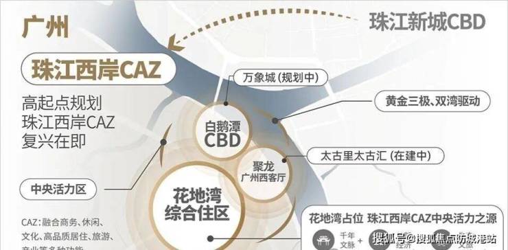 万科理想花地傲璟所在的花地湾板块,是广州主城不可多得的价值高地。根据 2023 年《荔湾国土空间总体规划》,花地湾被纳入白鹅潭、聚龙湾双核心辐射范围,三大板块在半径约 2 公里内构建起珠江西岸 CAZ 黄金三极,打造 “产、商、住” 一体的新城市中心。