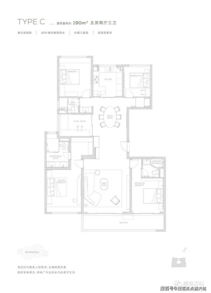 户型亮点:边厅设计,270°转角景观视野;客餐厅一体化LDK布局,空间感奢阔;双套房设计(主人套房与长辈套房),兼顾隐私与关怀;独立家政间,家务动线分离。