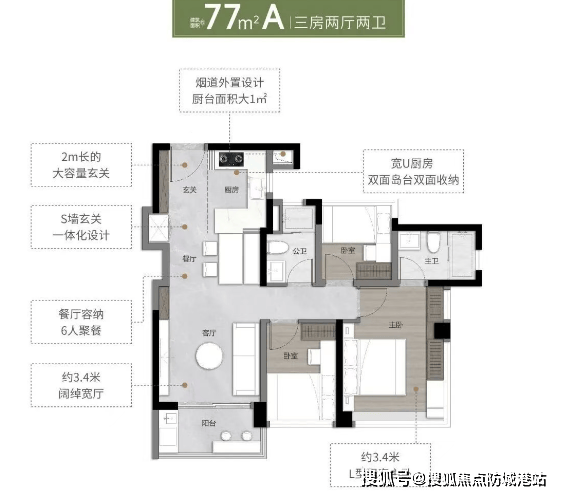 项目主打建面约 77-135㎡三至四房,作为南站首个超新规产品,实用率高达 127-137%,部分户型使用率甚至达到 138%,阳台占比更是高达 20%,为板块最高水平。万科通过 300 多户客户调研,打造 14 种变异户型,满足不同家庭需求:建面约 77㎡户型做到三房两厅两卫,三面宽南向设计,搭配 270° 全景舱主卧与 LDKB 一体化客厅;约 88㎡户型提供可变双开间宽阳台或主卧步入式衣帽间两种选择,7.3 米通铺阳台延伸生活空间;约 103㎡户型带独立入户花园与 270° 瞰景阳台;约 135㎡户型则为南北通透双阳台设计,5.25 米大宽厅与 5.45 米大阳台,主卧开间达 3.6 米,居住体验媲美大平层。