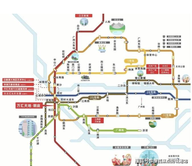 规划地铁25号线:项目位于白鹅潭CBD核心区,规划3地铁6线交汇,未来换乘更便捷