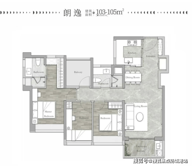 103㎡四房两厅一厨两卫:总价约485万,四房两厅,全明通透,得房率约96%