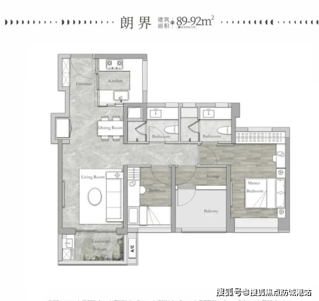 89㎡三房两厅一厨两卫:总价约420万,南向三开间,LDK一体化设计
