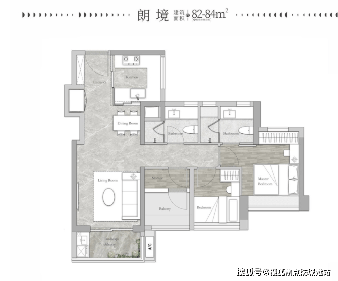 82㎡三房两厅一厨两卫:总价约385万,全明格局,户型方正,采光充足