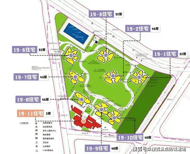 A:1/2/6/7号楼近茶滘路高架,建议选择中高区南向单位;110KV变电站位于北侧外围,符合安全距离,影响可控。