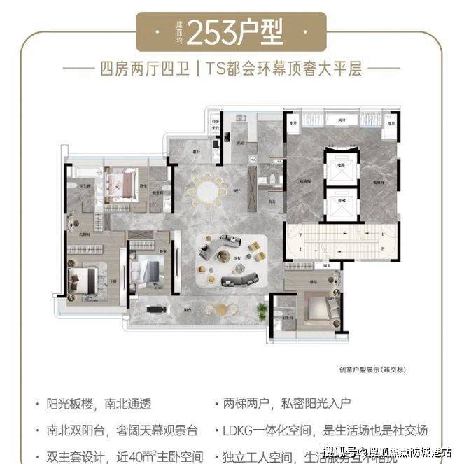 户型设计亮点满满。在售 140 - 253 平南向板式住宅,涵盖四至五房。观景楼座靠近中央园林,静谧舒适,北望长隆野生动物世界,南瞰北美暖林境。板式布局,南北对流,专梯入户,私密性好。
