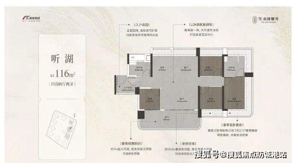 核心卖点:超 100% 使用率(新规户型优势)、北向一线金山湖景、南向望大夫山、省级省实名校加持、万博 CBD3 公里生活圈。