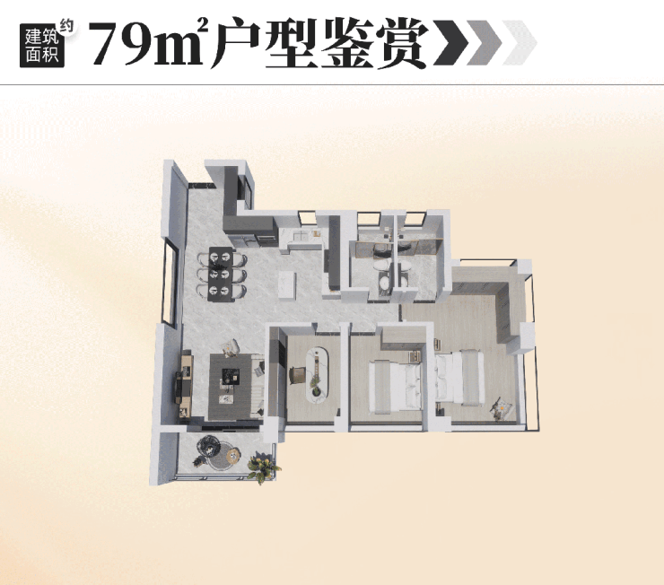 户型设计:得房率约82%,采用现代建筑立面与人性化布局,兼顾实用性与舒适度;