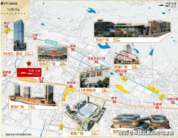 保利云境落位于白云新城中轴线上,地理位置优势显著。项目紧邻黄石东路,周边3公里范围内汇聚广云路、机场高速、华南快速等城市主干道,自驾出行极为便捷——无论是前往天河CBD、越秀老城区,还是海珠创新湾,均能实现高效通勤。