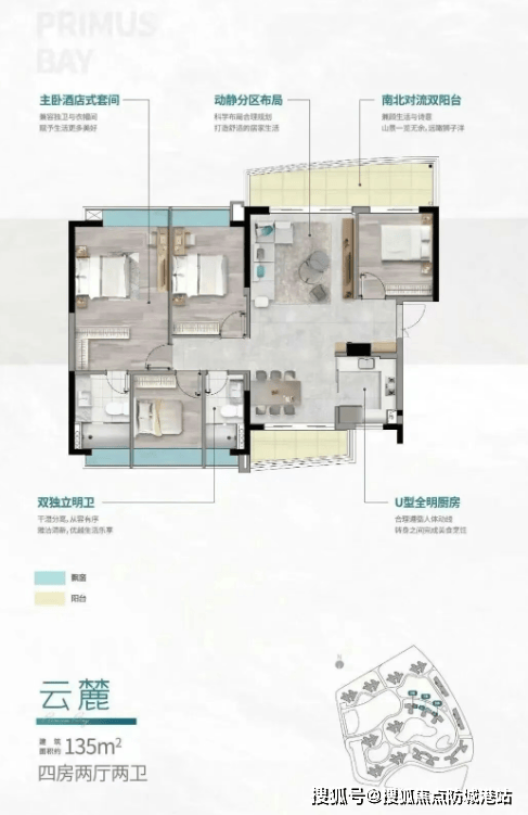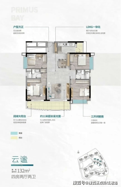 132–135㎡四房两厅两卫:LDK一体化设计,双阳台,南北对流;