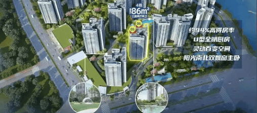 户型产品:86–154㎡三至四房,得房率高达94%
