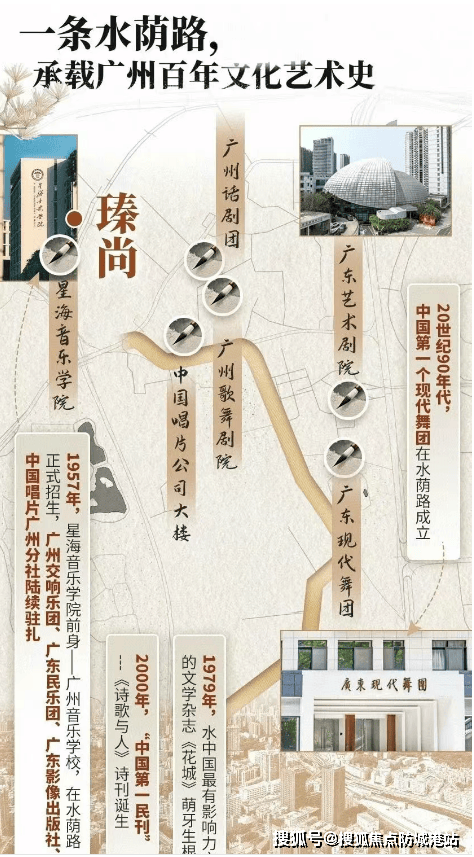 瑧尚所在区域自上世纪70年代以来就成为了广州文化艺术的摇篮,孕育了中国最具影响力的文学杂志《花城》以及“中国第一民刊”《诗歌与人》等重要文化机构。如今,短短1公里的水荫路上集聚了广州歌舞剧院、广州话剧团、星海音乐学院等数十家文化单位,这里不仅是广州文化艺术的起点,更是承载着这座城市百年沉淀的文化艺术历史根基。