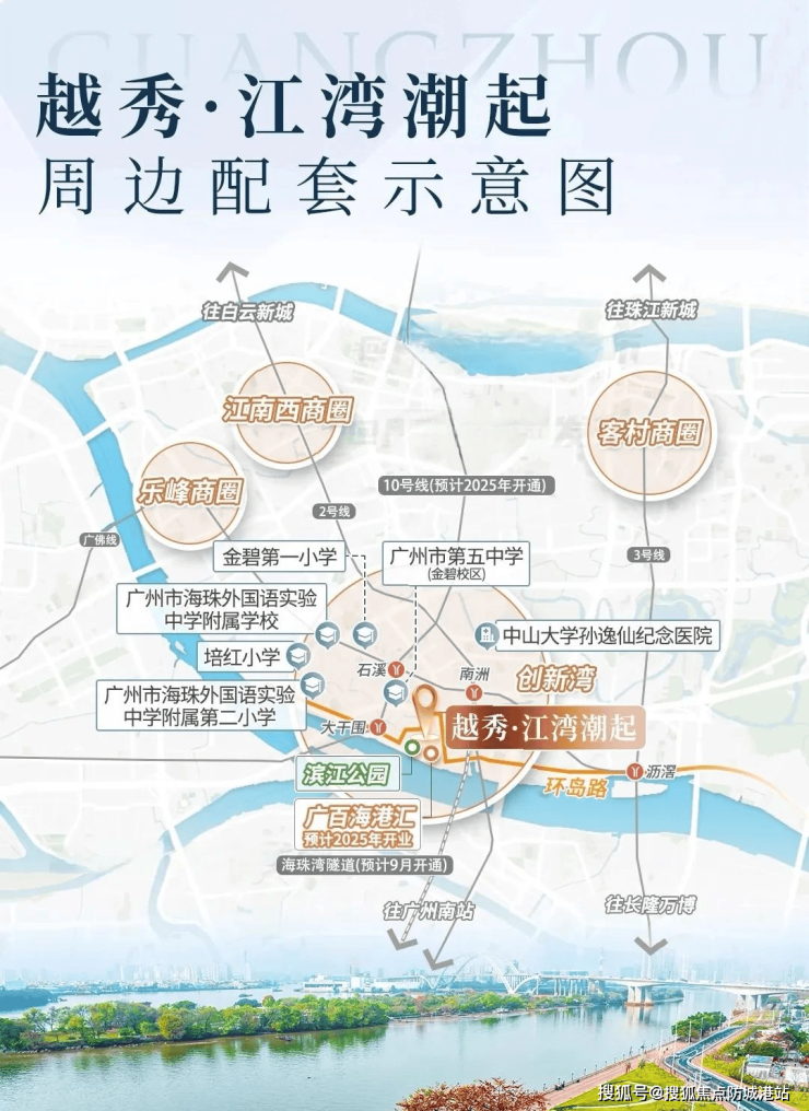 越秀潮起江湾紧邻珠江后航道,享有稀缺的南向江景资源,步行仅需约300米即可到达滨江公园,这里不仅是散步、赏景的好去处,更是享受都市繁华与自然宁静完美融合的理想之地。周边教育资源丰富,涵盖了从小学到中学的一系列优质学校,如广州第九十七中学、南武小学以及海珠外国语实验中学附属第二小学等,为孩子的成长提供了坚实的教育基础。同时,随着广百海港城的开业,一个集商务办公、休闲购物与酒店功能于一体的大型滨江综合体也将成为业主们生活的一部分,进一步提升了区域的价值。