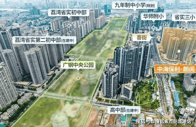 中海保利朗阅坐落于荔湾区广钢新城创业西路核心地段,占位珠江后航道黄金三角区域,北接白鹅潭CBD(车程仅10分钟),南连广州南站(直线距离8公里),东望海珠创新湾(车程15分钟),形成“产业-居住-交通”的完美闭环。作为广州中心区最后一块成片开发的高端居住区,广钢新城自2025年最后一宗宅地出让后,未来3年无新增住宅用地供应,现有新房库存去化加速,据广州市规划和自然资源局数据显示,当前片区可售房源不足2000套,按2025年月均去化速度,仅够支撑10个月,稀缺性直接拉满。