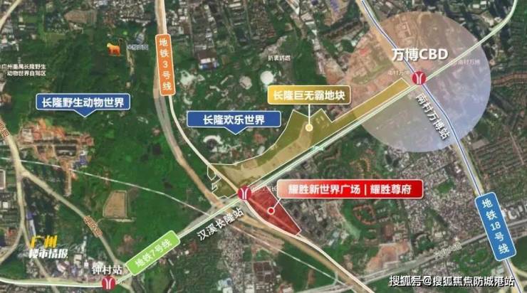 耀胜新世界广场是广州地铁和新世界联合开发的,汉溪长隆地铁站上盖的tod项目。项目所处地块原为番禺区钟村街汉溪村BA0904007地块。项目位于广东省广州市汉溪长隆地铁站,汉溪大道与汉兴西路交汇处,西边和南边为新光快速路,北边为长隆欢乐世界,东边为奥园城市天地。