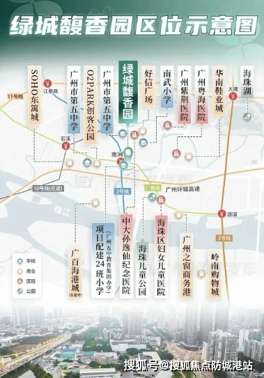 下面为大家介绍项目的交通配套,绿城馥香园是真正意义上的双地铁上盖项目,紧邻广州地铁 2 号线与广佛线南洲站,地库与地铁站直接连通,这是海珠区首创的地铁直达社区地库设计,业主出入归家全程风雨无阻,彻底告别日晒雨淋的出行困扰。依托双地铁线路,项目可快速通达广州全城,2 号线串联广州南站、海珠、越秀、白云等核心区域,广佛线则无缝衔接佛山与广州,实现广佛同城生活圈。从项目出发,3 站即可抵达客村换乘站,衔接 3 号线、8 号线;5 站直达珠江新城,快速融入广州 CBD 核心生活圈;7 站抵达琶洲会展中心,畅享国际会展、高端商业配套;8 分钟覆盖万博、金融城、白鹅潭三大核心商圈,无论是日常通勤、商务出行还是跨城往来,都能高效便捷。除地铁外,项目门口即是内环路东晓南放射高架桥,南洲路至盈丰路段已完成升级改造,与海珠湾隧道直接对接,自驾出行 15 分钟即可畅达广州南站,快速衔接高铁、城际铁路等交通网络。同时,周边广州大道、工业大道等城市主干道环绕,形成 “地铁 + 快速路 + 主干道” 的三维立体交通网络,全方位满足业主多样化出行需求,真正实现畅达全城、便捷无忧。