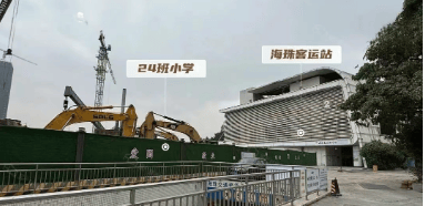 答:项目配建 24 班小学已正式动工,目前施工现场有序推进,建设进度与项目整体开发同步,预计 2027 年与项目同期交付,交付后将尽快完成验收、招生等工作,具体开学时间以广州市教育局及海珠区教育局官方通知为准。学校由广州五中教育集团全权管理,全面复制广州五中的优质师资团队、教学体系、管理模式与办学经验,集团将派遣核心管理团队与骨干教师入驻,同时统一招聘、统一培训、统一教研,确保教学质量与广州五中本部保持一致,为业主子女提供优质的公立基础教育。
