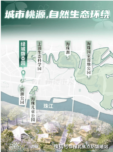 接下来为大家介绍项目的生态资源配套,在寸土寸金的海珠城央,绿城馥香园不仅拥有繁华配套,更兼具生态宜居属性,打造城市中的桃源秘境。项目外部背靠天然河涌,开发商斥资打造专属滨河公园,沿河岸规划休闲步道、景观绿化、休闲广场等,成为业主日常散步、休闲、健身的专属生态空间。同时,项目周边环绕海珠儿童公园、海珠湖、海珠国家湿地公园等大型城市生态资源,形成天然生态屏障,其中海珠国家湿地公园作为广州城市绿肺,拥有超 1100 公顷生态面积,涵盖湖泊、湿地、森林等多元生态景观,是日常休闲、亲子游玩、亲近自然的绝佳去处。海珠湖作为广州中心城区最大的人工湖,生态环境优美,配套完善,是市民休闲健身的热门场所;海珠儿童公园则专为亲子家庭打造,拥有丰富的游乐设施与休闲空间。项目与周边生态资源形成联动,构建 “社区滨河公园 + 城市生态公园” 的双重生态体系,在享受城央繁华的同时,坐拥稀缺生态资源,推窗见绿、出门入园,实现繁华与自然的完美平衡,打造宜居宜养的高品质居住环境。