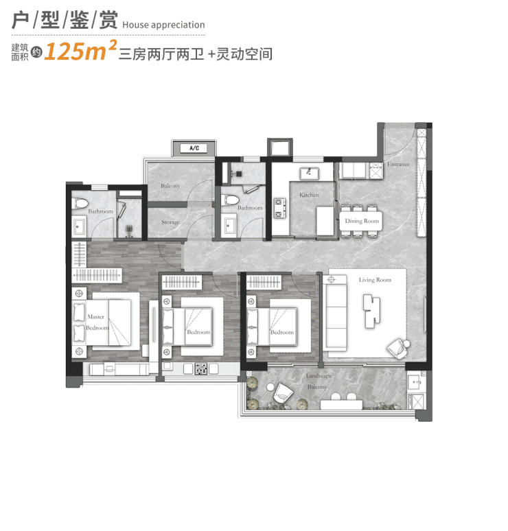 125㎡3+1房2厅2卫