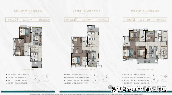 此外,约90-118㎡舒享三四房户型,同样兼具实用性与舒适性,户型方正、采光充足、布局合理,适合首改家庭居住。该系列户型空间利用率高,动静分离,干湿分区,同时预留充足的收纳空间,满足家庭日常居住需求,以高性价比为业主提供优质的居住体验。