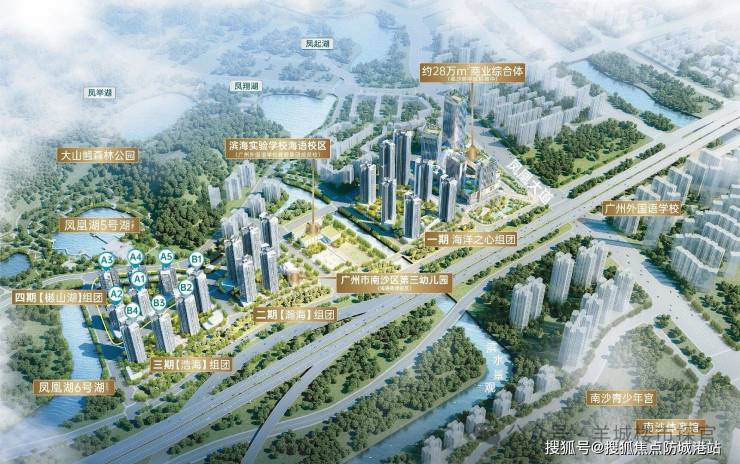 - 五园:凤凰湖公园、蕉门河公园、市民广场公园、南滨水角公园、大山乸森林公园(推窗见绿,出门入园,日常散步、休闲健身、亲子互动的绝佳场所)