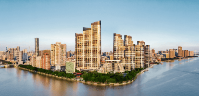 建筑细节注重高定美学,专梯专户设计、艺术长廊、迎客前厅及顶尖中央空调系统,营造会呼吸的五恒生态空间,包括恒温、恒湿、恒氧、恒净及恒宁静功能,全方位保障业主舒适与健康。曲面玻璃及全景阳台设计确保每户享受江景资源,建筑立面与江景绿化带完美融合,打造独一无二的滨江大宅景观。