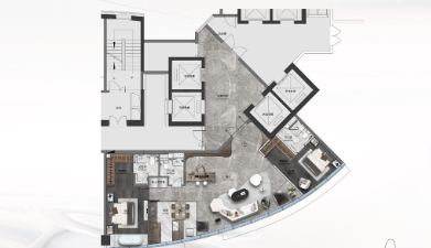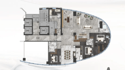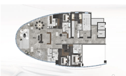 户型布局科学,餐厅、客厅及主卧动线顺畅,兼顾采光与私密性。得房率高,空间利用率优化,每一户均配置专属会所式空间设计,实现生活、休闲及社交功能高度整合,满足塔尖圈层对舒适性和尊贵感的双重追求。