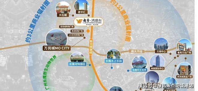 越秀鸿璟台基础配套完善。教育上,明确纳入配建小学学区,该小学纳入仲元附属学校教育集团管理,创新办学体系,为孩子提供优质教育。商业方面,一路之隔就是万民城、105 新地购物广场,快速接驳万博 CBD 高端商圈,天河城、万达广场等近在咫尺,休闲娱乐、社交聚会十分便捷。周边还有长隆文旅区、南站商务圈,生活丰富多彩。