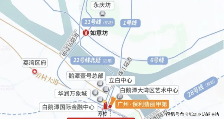城市主干道、高速或快速路布局:片区拥有白鹅潭大道及如意坊放射线等主干道,未来开通四线地铁后,将进一步改善区域交通承载力。