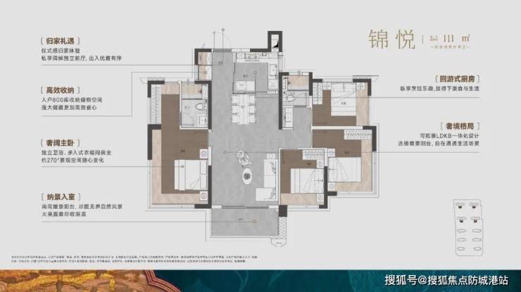 锦海棠规划10栋住宅,采用围合式布局,首推1栋(16层)与11栋(26层),共104套房源,全部为四房户型,面积段涵盖111㎡至171㎡,精准锁定改善型客群。得益于新规阳台占比达30%,项目整体实用率突破100%,真正实现“买多少得多少”。
