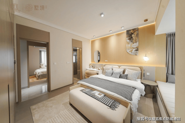 在独立的私密功能空间里,通过景观飘窗设计,让空间感再一次拉满,尤其是主卧,除了独立的卫浴之外还有专属的观景领地,与酒店套房有着异曲同工之妙,让生活的舒适度大幅提高。