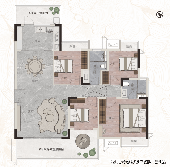 根据新规产品的容积率计算规则,阳台等半开敞空间半计容比例提升5%,飘窗进深上限也提升至0.8米。