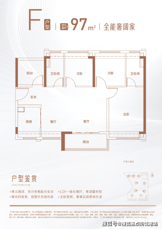 建面约97㎡三房两厅两卫:宽敞舒适,适合追求更高居住品质的家庭。