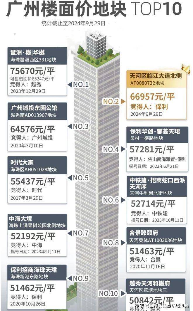 保利斩获天河临江大道北侧 AT080722 地块(南方面粉厂地块),历经激烈竞拍,以高楼面价成为天河地王,仅次于琶洲地王。项目地处金融城西区桥头堡,毗邻珠江新城,与汇悦台相近,尽享优质配套。规划 6 栋住宅,500 + 套房源,定位高端,为全新产品系。交通便捷,距地铁 5 号线与 11 号线交汇的员村站仅 300 米。教育资源丰富,配建幼儿园,对口优质学校,周边学校林立。生活配套完善,3KM 内国际商业汇集,医疗资源完备,生态公园环绕。项目设计独特,打造 11 米挑高空中浮岛、满级会所等创新空间。户型面积约 203 - 630 平,超大玻璃幕墙搭配铝板线条装饰,还有超新规加持,设备高端,未来将成为广州豪宅新标杆。