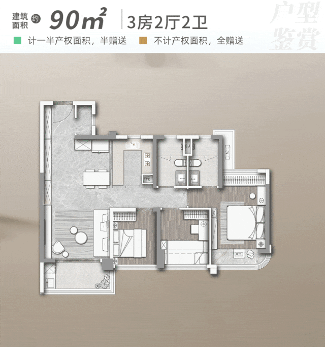 高得房率与灵动户型:项目所有住宅单元设计注重空间利用,提供超高得房率,最大化每一寸空间的使用效能。独特的LDK可变户型设计,满足不同家庭需求,灵活适应未来居住变动,提供理想的居住空间。