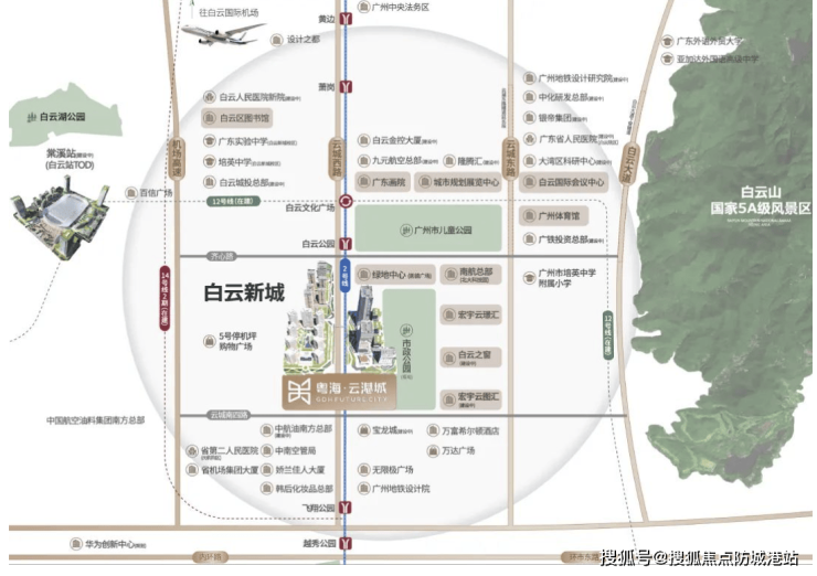 云港城位于白云新城CBD门户,交通体系已成型。项目步行即可到达地铁2号线白云公园站,同时规划中的地铁12号线亦在约800米范围内,通达全城核心商圈十分便捷。通过2号线三站可直达广州白云站,快速切换TOD综合交通枢纽。区域内四横四纵主干道交织,包括广园快速、机场高速和环城高速,构建立体交通网。依托白云作为南中国重要空铁枢纽的地位,未来交通优势将进一步放大,居住者可以实现高效通勤和便捷的跨城出行,这也是白云新城超越珠江新城的潜力体现。