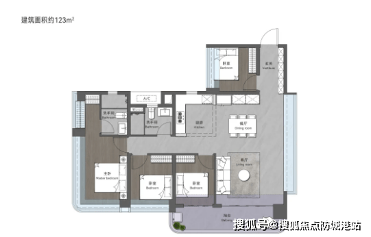 #### 户型四:123㎡创意四房两卫(奢阔采光,通透宜居)
